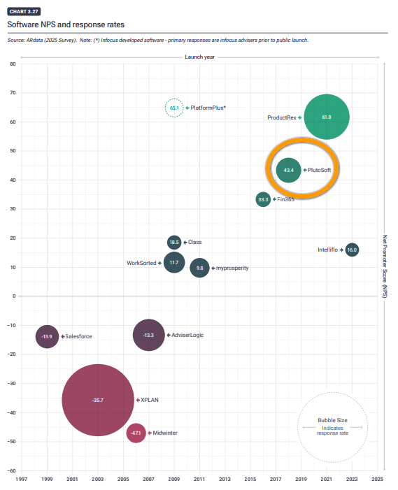 Plutosoft is highly valued by advisers. For the second year in a row, Plutosoft has achieved the highest NPS in the CRM category in the Adviser Ratings Landscape Report (across externally surveyed firms). And better yet, our score has soared to 43.4 in 2025. This consistent recognition highlights Plutosoft’s commitment to delivering an exceptional user experience and ongoing adviser satisfaction.